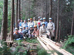 この日は、繁田新工場長も活動に参加され、材の搬出に大変なご協力を戴いた