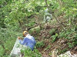 前回6/28の継続として「植樹地土留め用材」を切り出しました。